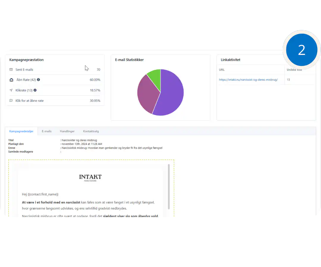 Få indsigt i din forretning, e-mail kampagner og automatiseringsdata, og forstå din virksomhed. Analyser for forbedringer, optimer for konvertering.