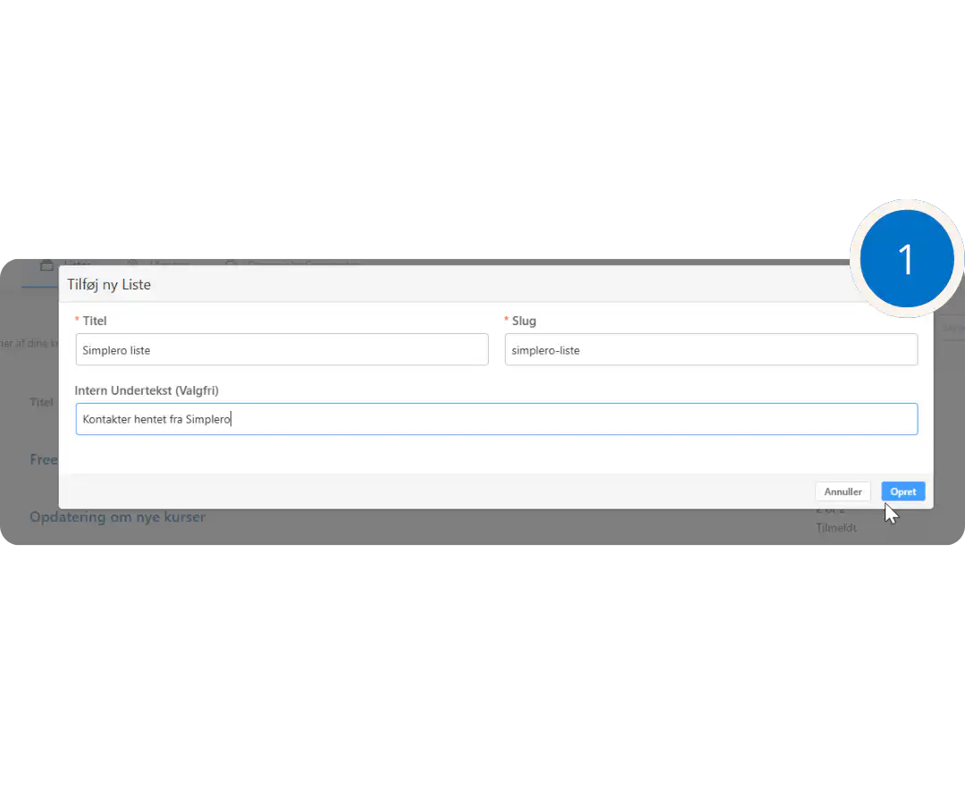 Opret kontakt liste