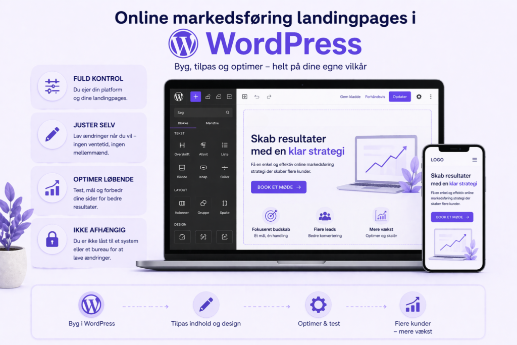 Vil du have online markedsføring landingpages, der faktisk konverterer – og som er bygget i WordPress, så du selv har kontrollen?